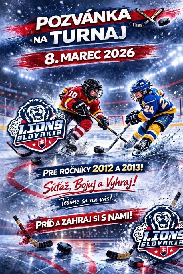 Hokejová akadémia Slovakia Lions pozýva všetkých mladých hráčov ročníkov 2012 a 2013 na napínavý turnaj plný emócií, súťaženia a skvelej atmosféry!